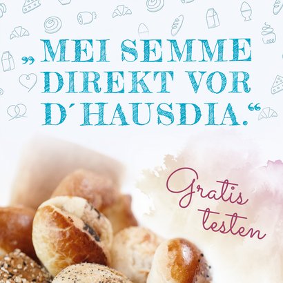 Inspiriert vom regionalen Charakter des Semmel-Lieferdienst, entstand schnell die Wort-Marke "MeiSemme" für das deutsche Liefergebiet und "MySemmerl" für die Kunden im angrenzenden Salzburger Land.
