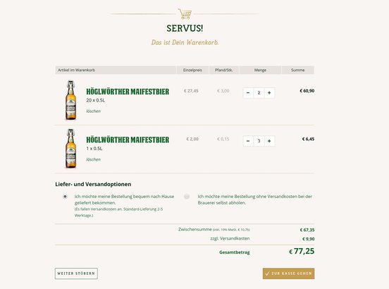 Des Weiteren wurde auf ein überzeugendes Kundenerlebnis wert gelegt, welches den User zielsicher durch die Seite führt. Content Commerce ist hier das große Stichwort. Relevanter, informativer Inhalt in Form eines Magazin-Bereichs rund um das Unternehmen und die Region wird mit Angeboten der Brauerei vermählt. So wird ein für den User anregendes Erlebnis mit Mehrwert geschaffen. Und das übt sich wiederum positiv auf die Verkaufszahlen im Online Shop aus.